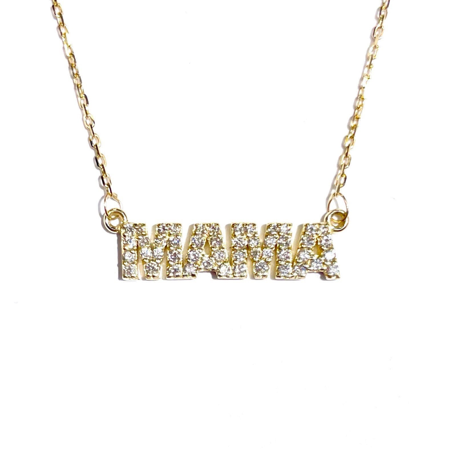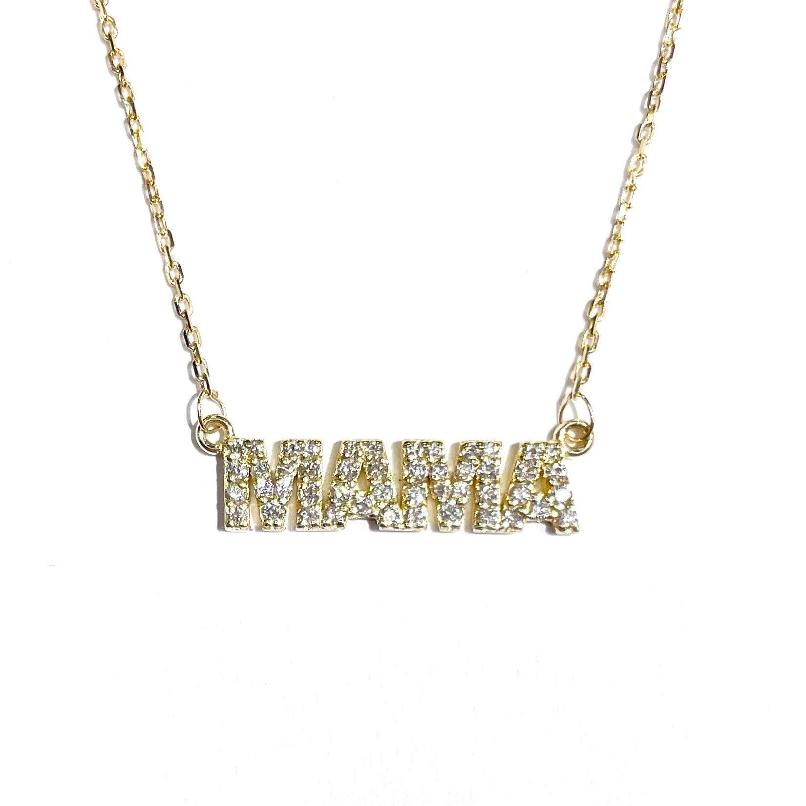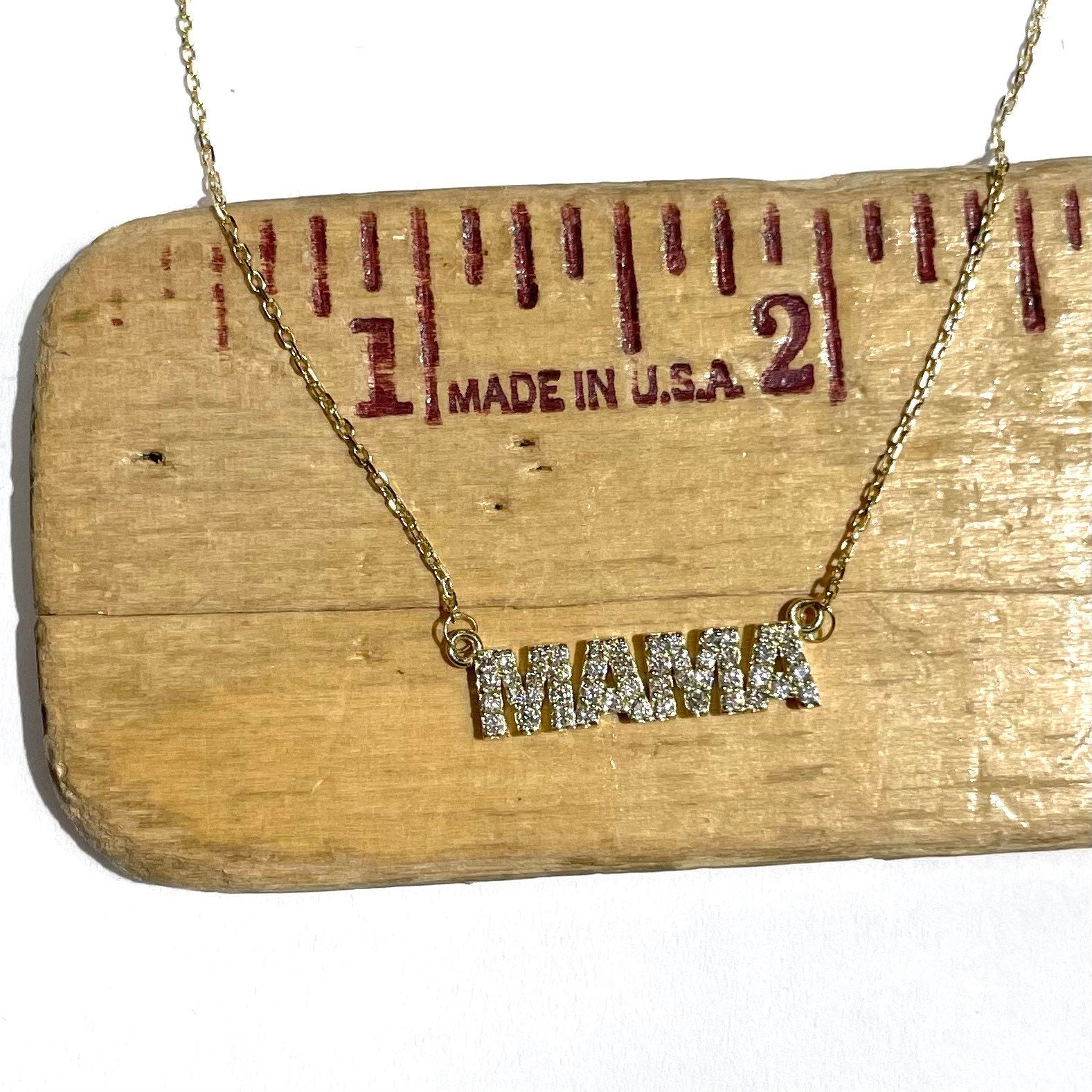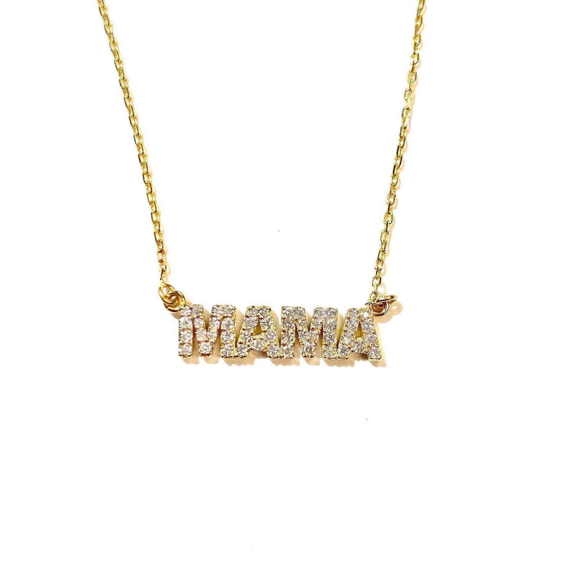14K Gold Diamond Mama Nameplate