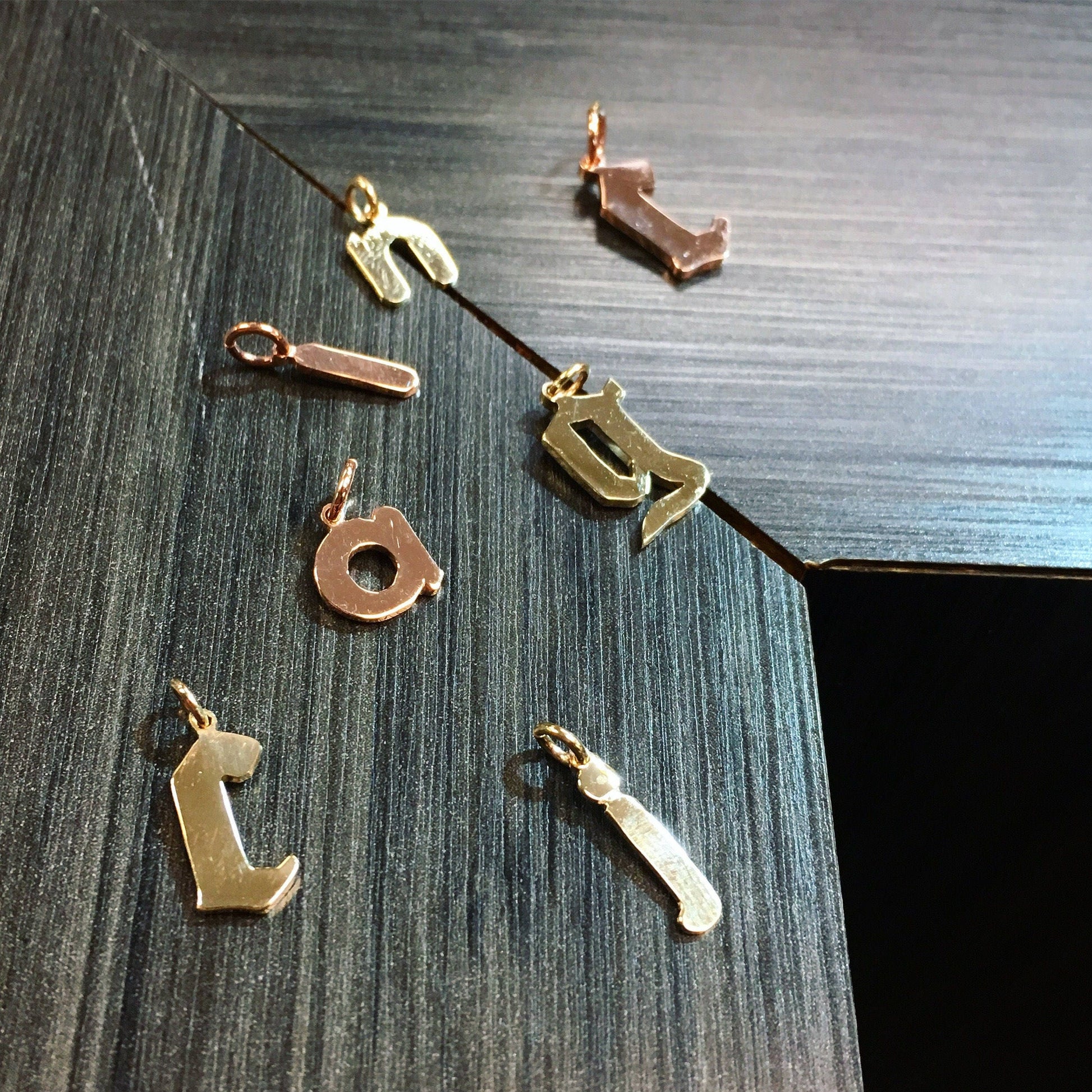 This simple and chic pendant is a perfect way to make a dainty statement. Choose from three different font styles (reference last picture), the edgy Old English, simply Classic or elegant Fancy. Initials are cut by hand in solid 14 karat yellow, rose or white gold. The final piece is brought to a high polish and topped with a 14 karat gold loop. Purchase with or without a thin 14 karat gold pendant chain. This is piece is crafted for the customer, a follow up email with a confirmation of the letter, upper or lower case and color gold will be sent within 48 hours of purchasing. Please be sure to note any preferences in size and leave the rest to our experts to create your beautiful pendant.