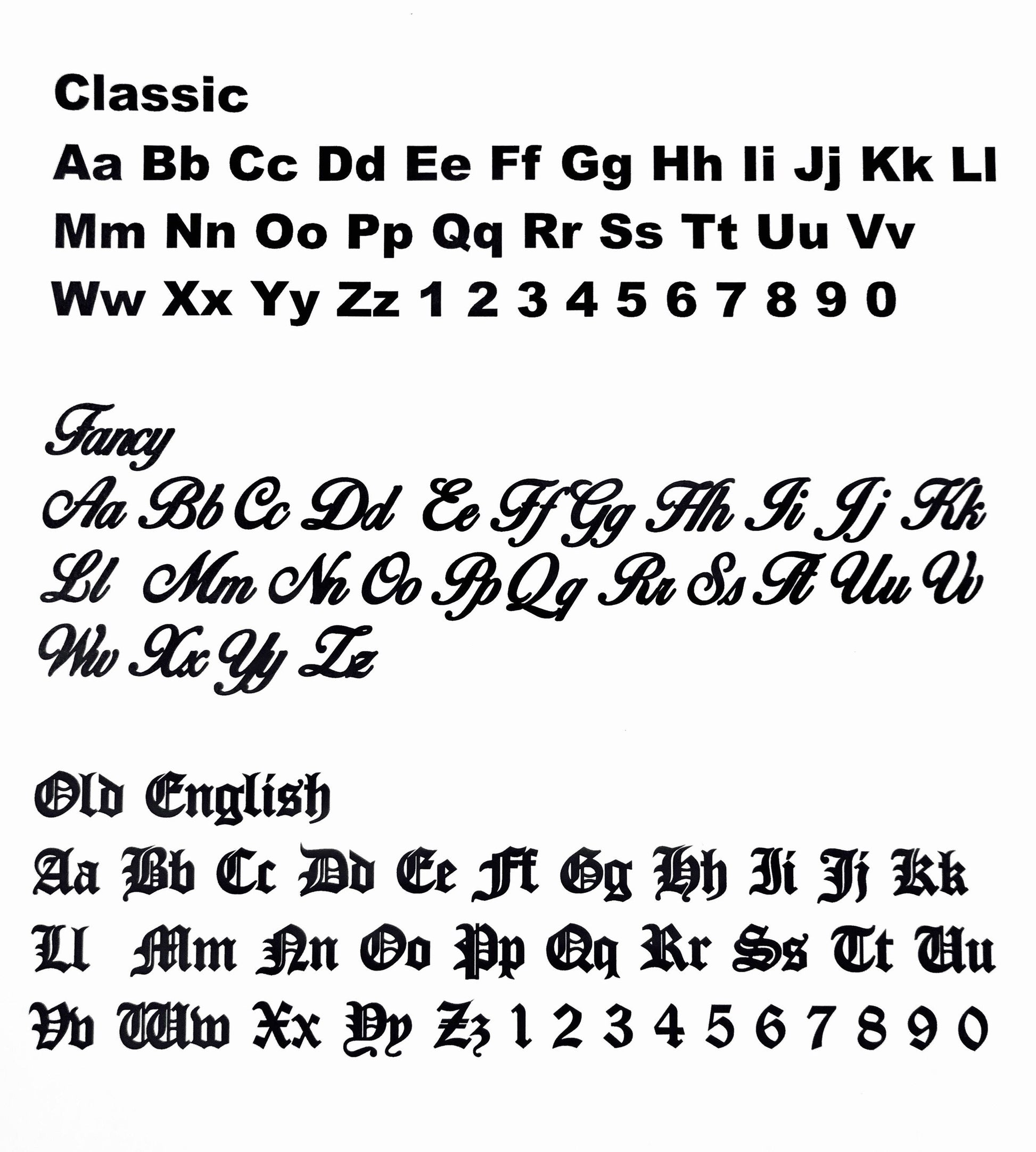 Each letter is unique and varies in length and shape. The variations in length, size, and shape of each name are taken into consideration and adjusted according to the price to ensure satisfaction. The average measurements are approximately one inch tall, half an inch long and one millimeter thick.