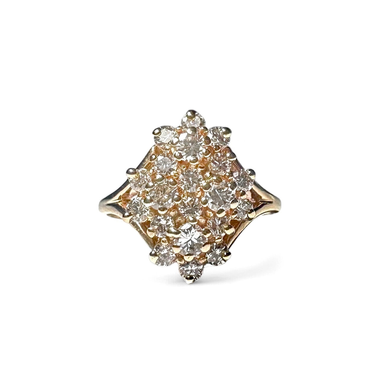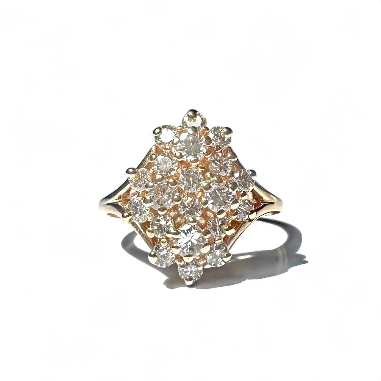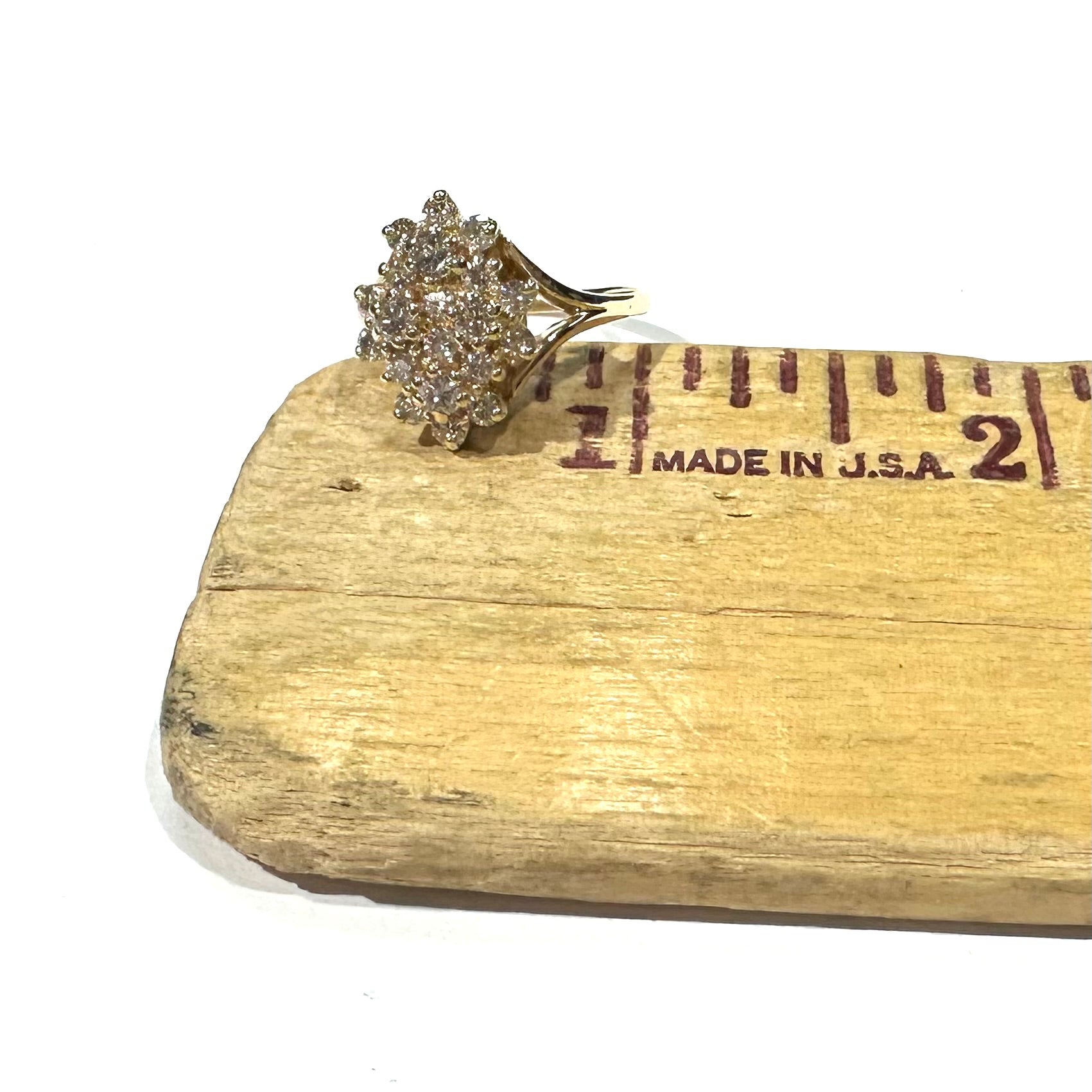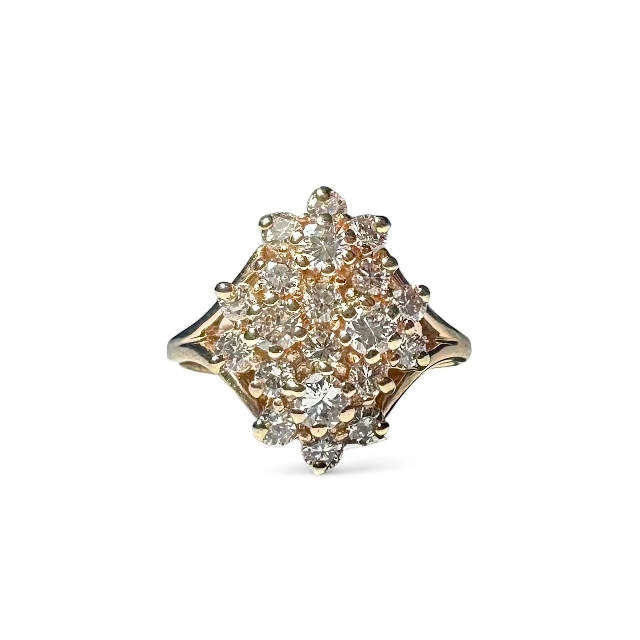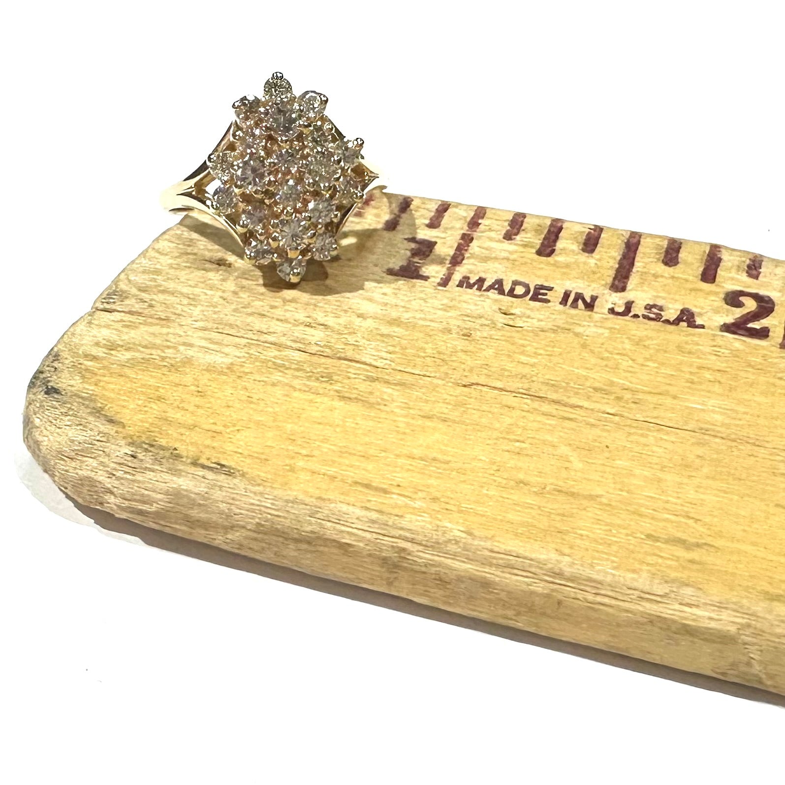 Beautiful one of a kind 14 karat gold diamond ring. Ring has 1.00 carat of diamonds total, 20 round diamonds G color S1 quality minimum. Ring weighs 4.4 grams and is size 8. Ring can be made to any size.