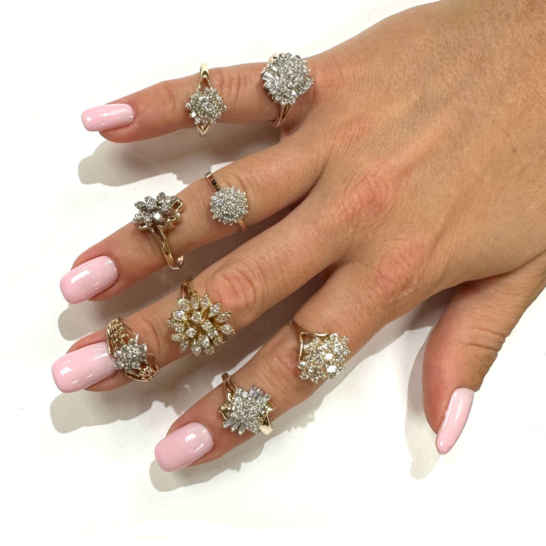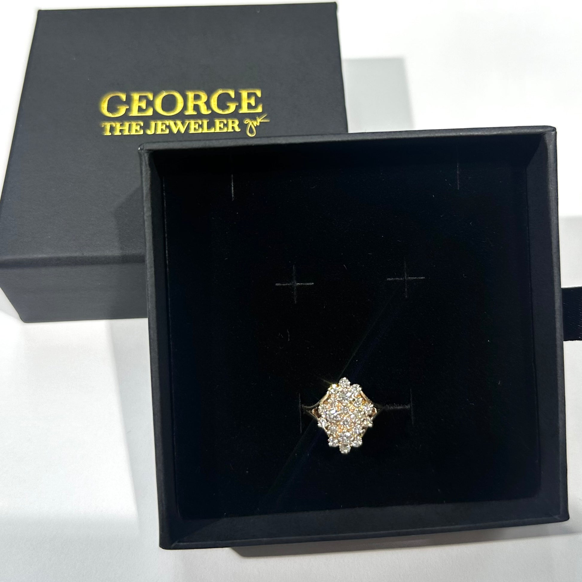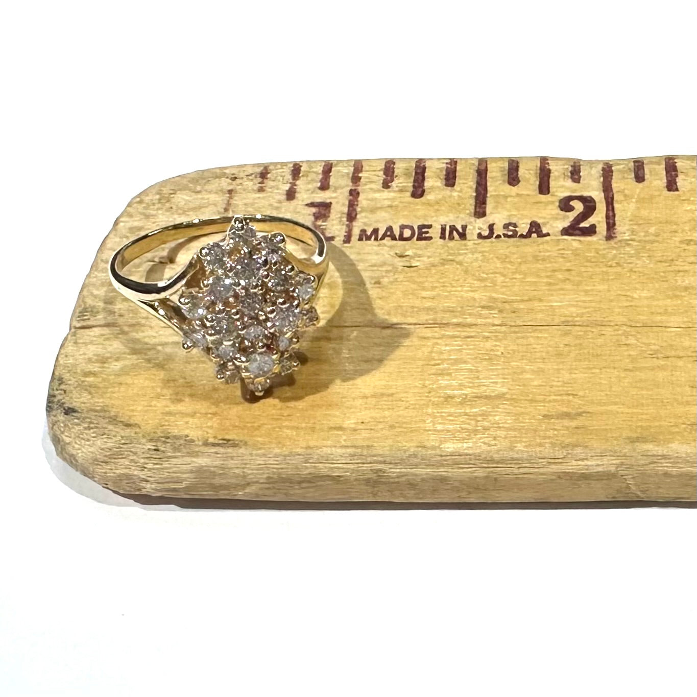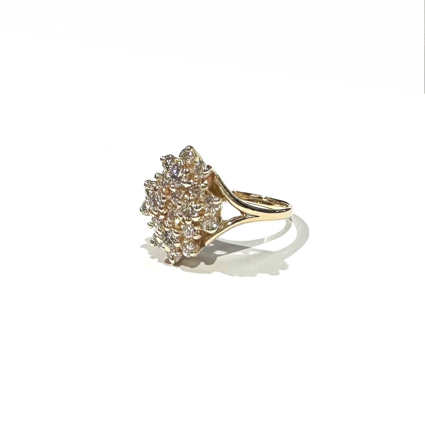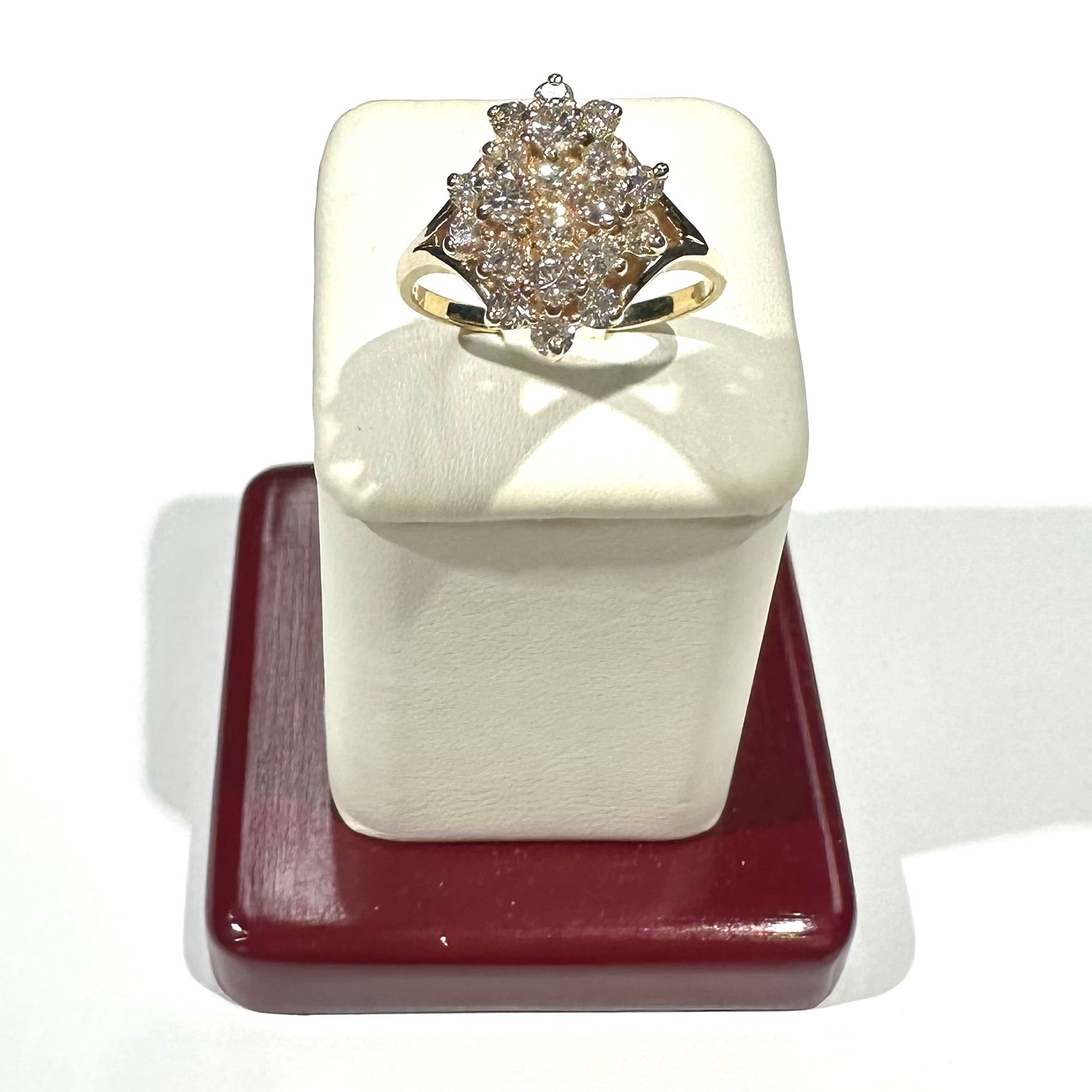 Beautiful one of a kind 14 karat gold diamond ring. Ring has 1.00 carat of diamonds total, 20 round diamonds G color S1 quality minimum. Ring weighs 4.4 grams and is size 8. Ring can be made to any size.
